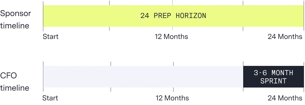 Sponsors estimate that a purely checklist-driven approach can delay exit preparation and potentially lower enterprise value, often by 1–3 turns of exit multiple, highlighting the financial impact of misaligned readiness strategies. CFOs and sponsors are measuring success by very different scorecards. Bridging this gap is critical.