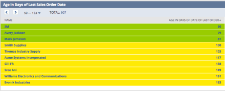 We are highlighting all customers who haven’t ordered in 3 months in Yellow and all customer who have ordered within 3 months in Green.